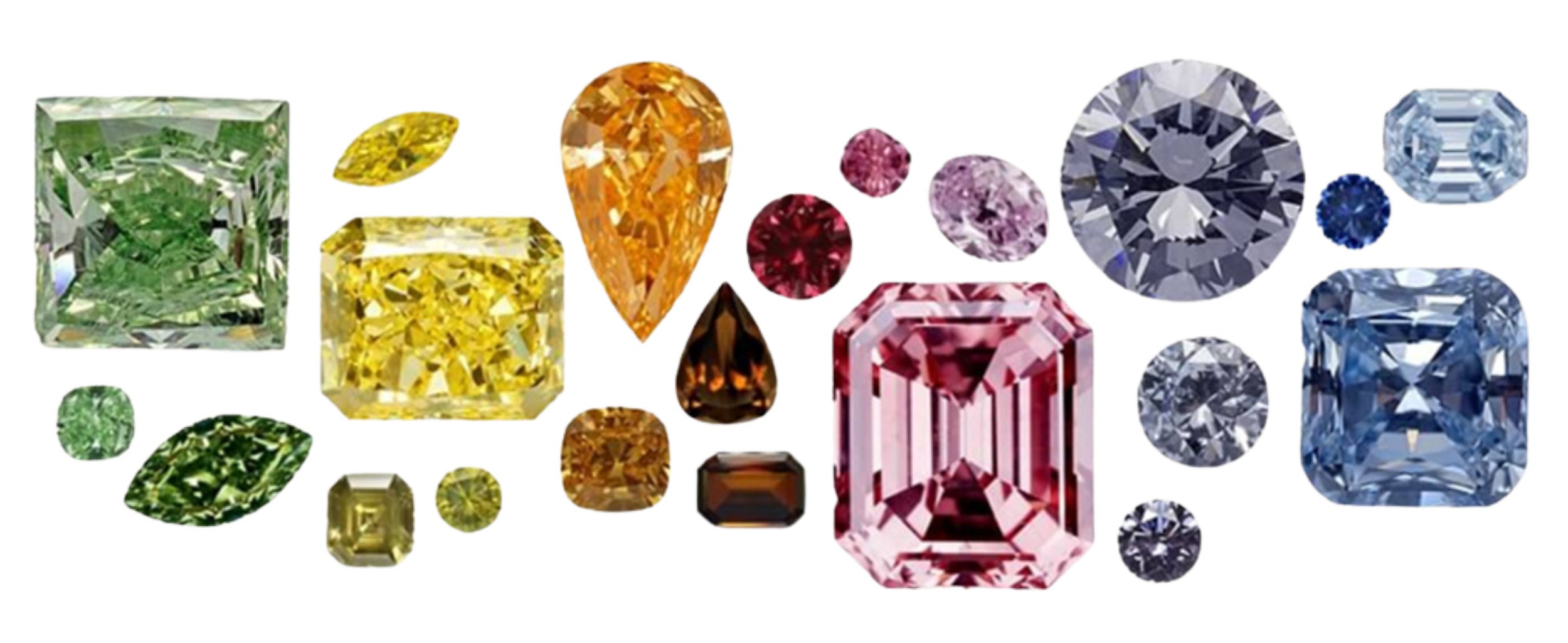 Les diamants de couleur (jaune, rose, bleu, etc.) sont rares. On estime qu’il existe un diamant de couleur pour 10 000 diamants blancs.