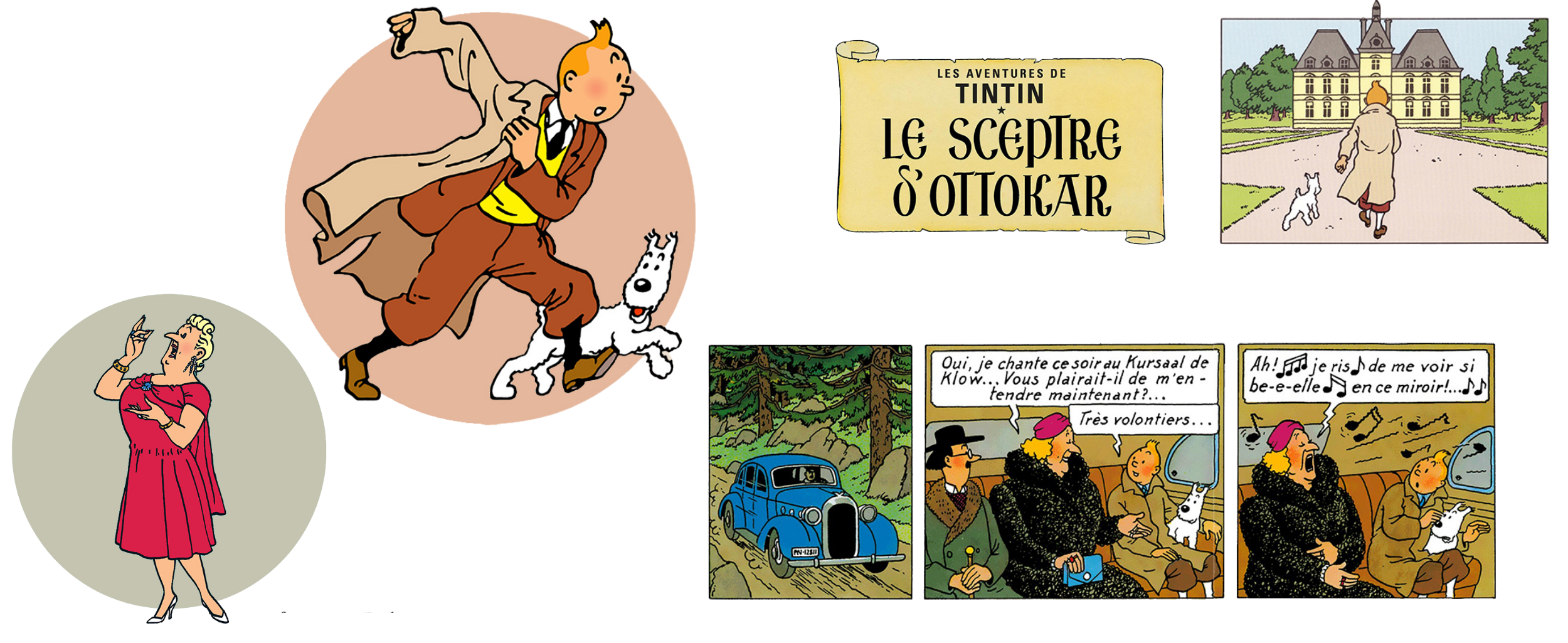 Bianca Castafiore fait sa première apparition en 1939 dans l’album Le Sceptre d’Ottokar. Elle y interprète L’Air des Bijoux de l’opéra Faust de Charles Gounod – un choix qui n’est pas anodin. Cet air emblématique, dans lequel l’héroïne Marguerite est fascinée par la beauté des bijoux, met en scène la Castafiore dans ce qui deviendra son élément naturel : la lumière, la scène, et surtout… les parures éclatantes.