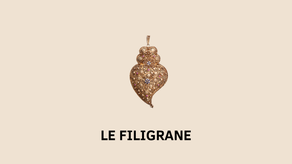 Filigrane portugais : Art délicat et raffiné. Héritage précieux du Portugal, ce travail minutieux mêle finesse artisanale et tradition millénaire, sublimé par le Cœur de Viana, véritable symbole de cet art ancestral.