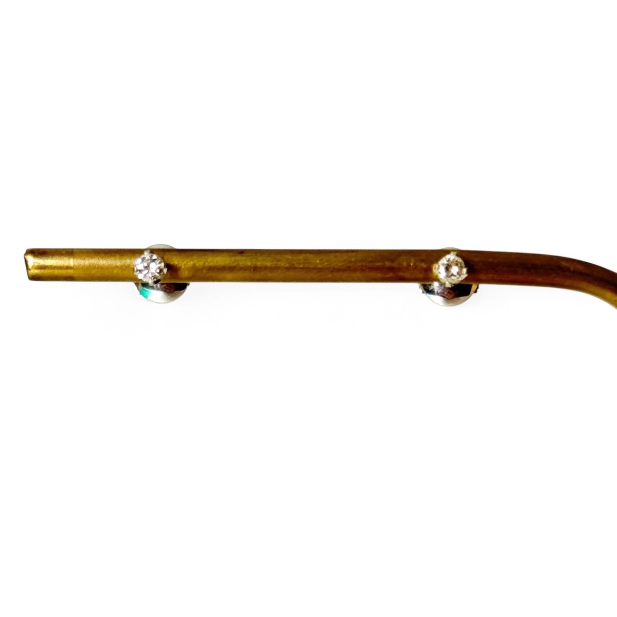 Côté pierre, une boucle d'oreille diamant se lit par les carats, la taille, la couleur et la pureté. Le carat indique le poids ; sur des puces, la symétrie passe par deux diamants bien appariés. La taille brillant, très répandue, offre un rendu vif, tandis que la taille baguette ou émeraude dessine une lumière plus calme, idéale en or blanc. Une couleur proche de l'incolore se marie parfaitement avec ce métal ; des nuances légèrement ivoire dialoguent bien avec un entourage en or rose si la pièce est bicolore. La pureté traduit la présence d'inclusions : près du visage, une pierre propre donne une lecture nette. Nous précisons ces critères, carats compris, sur chaque fiche produit et affichons un prix cohérent avec le métal, le travail et l'époque.