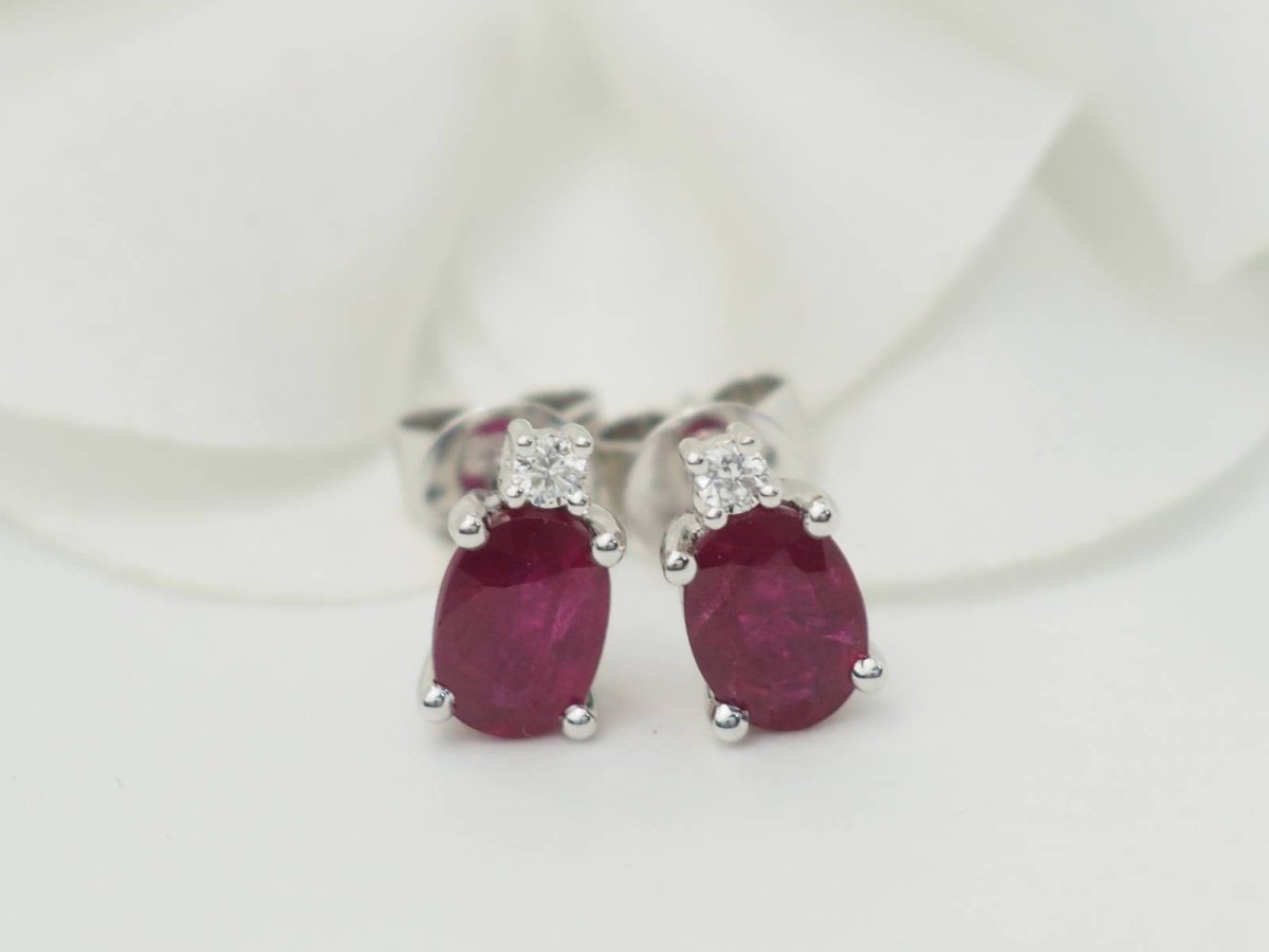 Le collier blanc rubis décline cette pierre en pendentif suspendu à une chaîne d'or blanc. Le collier Pétale bicolore rubis imagine la pierre comme le cœur d'une fleur stylisée. Les boucles d'oreilles rubis se déclinent du simple solitaire aux compositions plus élaborées associant diamants et or blanc.