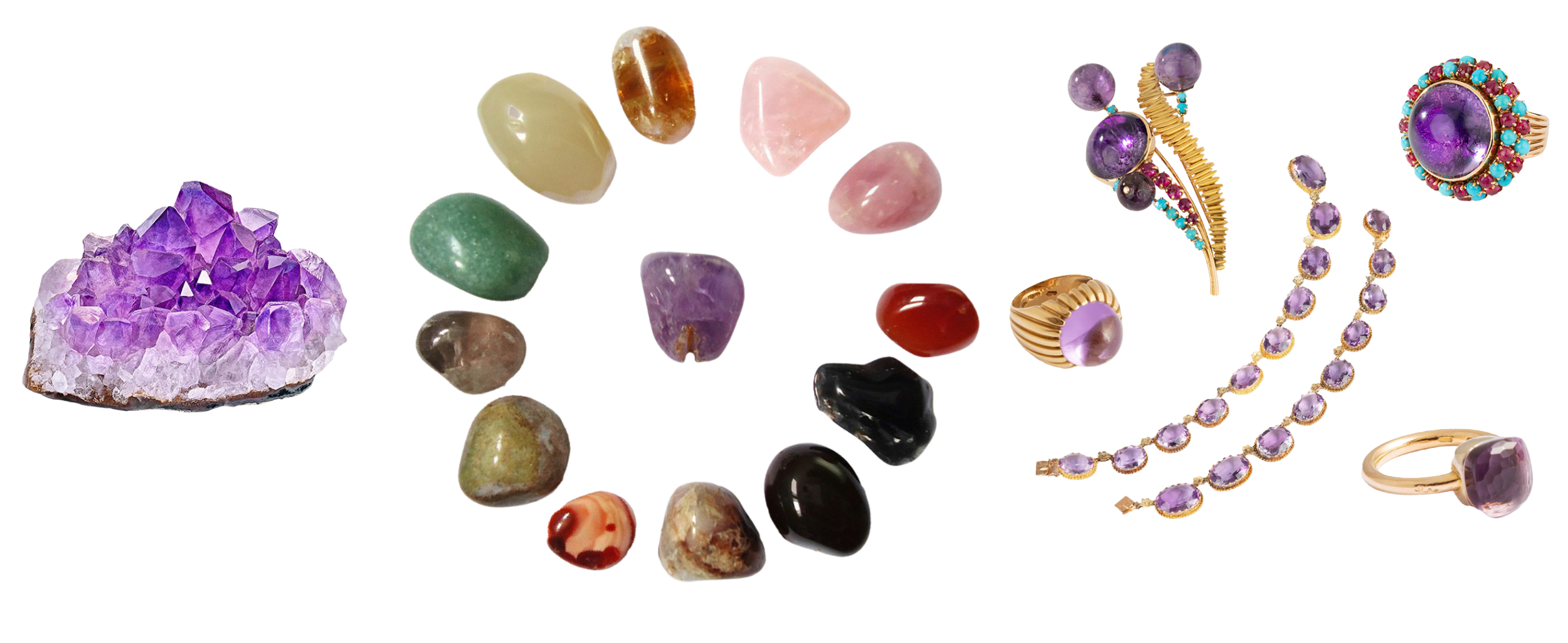 Since ancient times, amethyst has been considered a talisman of protection against the effects of alcohol. It is said that the stone gets its name from its resemblance to wine diluted with water.