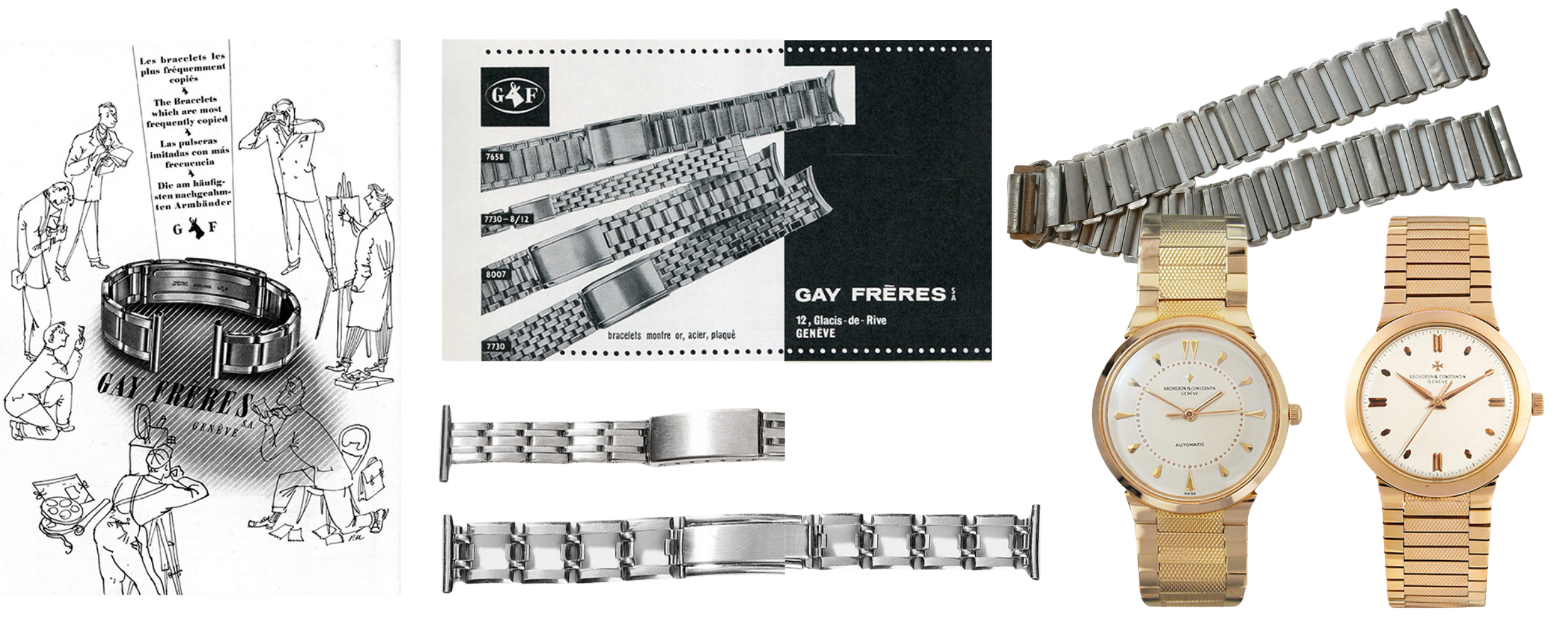 By the early 20th century, Gay Frères had solidified its reputation as a leader in the manufacture of metal bracelets, serving prestigious clients such as Vacheron Constantin , Patek Philippe , Rolex and Audemars Piguet . Their innovative designs, such as the Bonklip bracelet , were highly sought after, particularly for military watches, due to their versatility and durability.