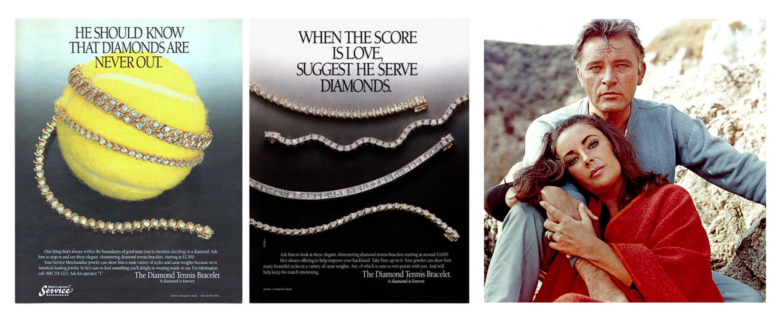The tennis bracelet was popularized by De Beers through a marketing campaign in the 1980s. to increase the demand for small, high-quality diamonds. This is how the slogan was born iconic: “A Diamond Is Forever” .