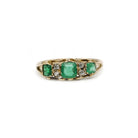 Ring probably from the mid-19th century, in yellow gold 585‰, set with an emerald of about 0.30 carat, and 2 other emeralds of about 0.10 carat each, and 4 small diamonds old-cut.