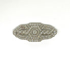 Brooch in paltinium and diamonds. Openwork geometric shape set with 140 diamonds old cut and one diamond center brilliant cut