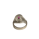 Ring signet ring in 18 carat white gold set with a ruby and surrounded by 18 diamonds size 8x8