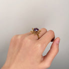 Geometric ring from the 70s in brushed 750‰ yellow gold, set with an amethyst. Weight: 7.20 grs. With a unique retro design, this ring will bring a vintage and elegant touch to your outfit.