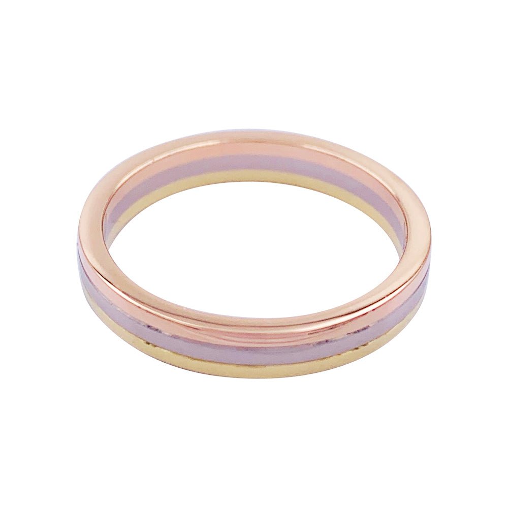 A wedding ring signed by Maison Cartier, 'Vendôme Louis Cartier', in pink, white and yellow gold. Width: 3.5mm Weight: 4.9 grams New price: 1530 Finger size: 58