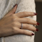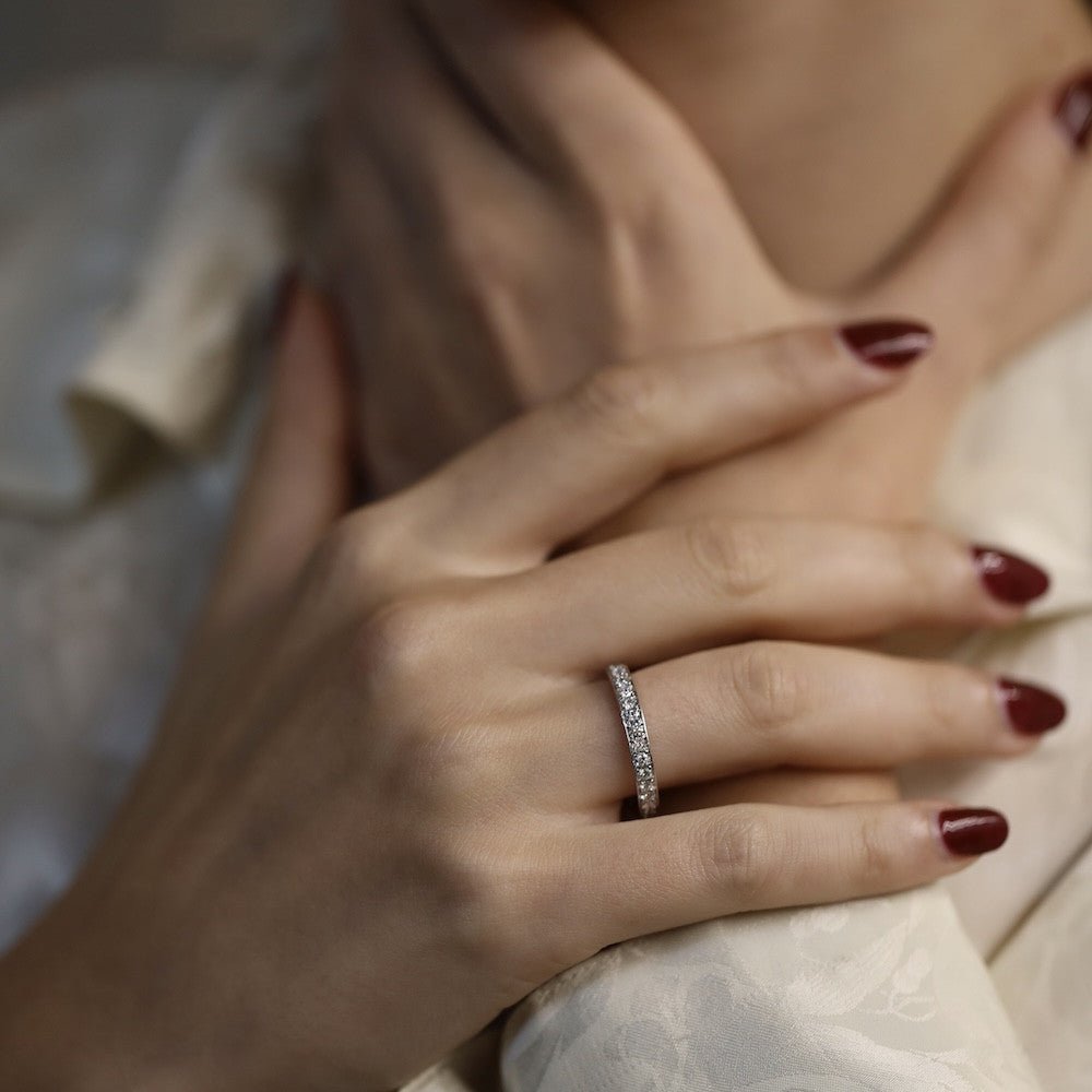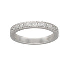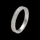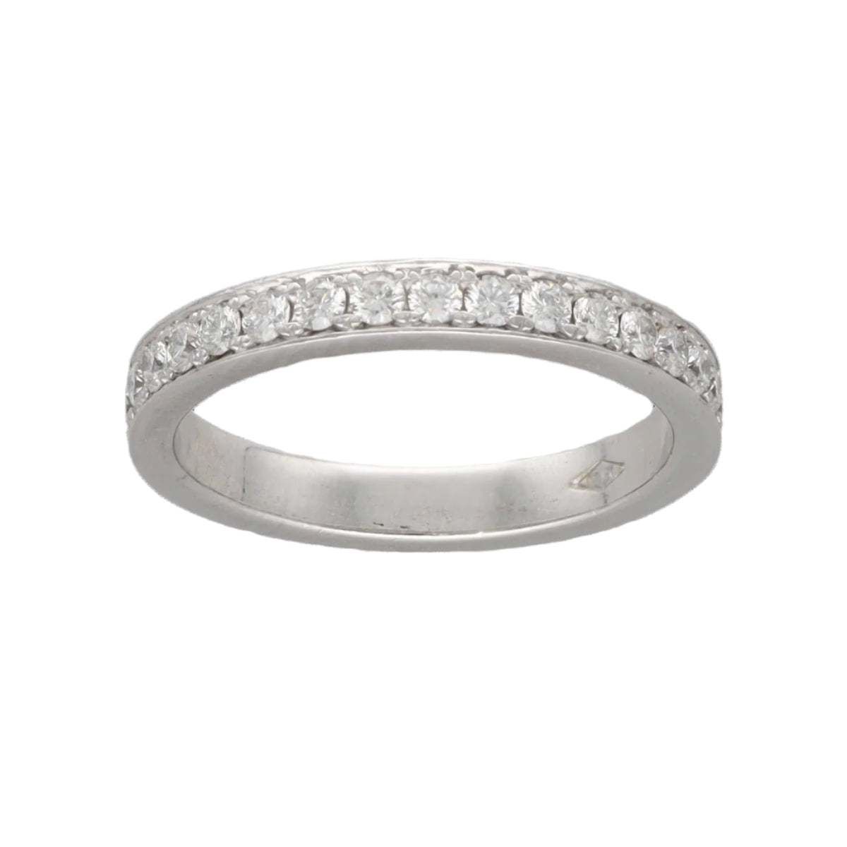 Claw-set wedding ring in 18k white gold with 34 diamonds brilliants of 0.035 Cts each, G-VS quality, i.e. 1.00 Cts. size 54-55. cannot be resized.