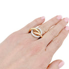 Ring signed by the Maison CARTIER model "Trinity Crash", in three tones of 18 carat gold composed of two intertwined rings holding a circular motif paved with 24 brilliant-cut diamonds.