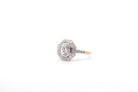 Ring adorned with a diamond central of 1.30cts J/P1 and 25 diamonds totaling 0.45cts. Made in yellow gold 18k and paltinium. Art Deco style, handmade