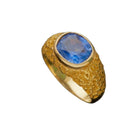 18K yellow gold hammered bangle ring adorned with a natural, unheated Ceylon sapphire of 2.80 carats accompanied by its certificate.