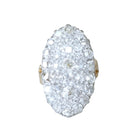 Old Marquise ring in 18kt yellow gold and platinum, (owl and mascaron hallmark) entirely paved with old-style cut diamonds, the total weight estimated at approximately 4.75 Cts. Color of diamonds ranging from H to J, clarity from VS to P. Work from the beginning of the 20th century, Belle Epoque. Gross weight: 10.02g Pattern height: 3.00 cm Pattern width: 1.70 cm Finger size: 53 (diameter 16.80 / US 6.30). Condition: very slight wear to the setting and the ring, and very slight micro scratches on the gold and platinum parts, natural inclusions in the stones, an old cut diamond replaced by a modern cut, see photos.