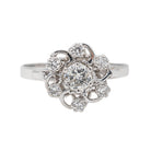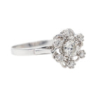 Ring at white gold 750 thousandths (18 carats) . set with diamonds. 1 diamond brilliant-cut. total weight approx. 0.35 ct. surrounded by 6 diamonds brilliant-cut. total weight approx. 0.18 ct (each diamond each weighing approx. 0.03 ct). total weight diamonds approx. 0.53 ct. top width: 1.13 cm. total weight: 2.45 g. excellent condition