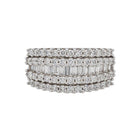 Ring in white gold 18 carats set with 70 diamonds including 52 diamonds brilliant-cut and 18 diamonds baguette-cut.