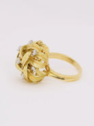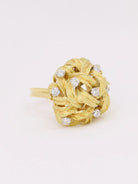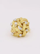Vintage yellow gold flower ring with diamonds 18k gold ring (750°/°°) representing a leafy decoration in matte gold enhanced with diamonds for a total weight of approximately 0.4 carat French work from the 1970s eagle's head hallmark for 18 carat gold and traces of manufacturer's hallmark. Finger size 58, resizing possible Gross weight: 11.09 grams