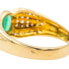 Ring in yellow gold 750 thousandths (18 carats). set with an emerald and diamonds. an oval-cut emerald. total weight approx. 0.26 ct. surrounded by 48 diamonds brilliant-cut emeralds, total weight approx. 0.24 ct. diamond each weighing approx. 0.005 ct). top width: 0.94 cm. Size size: 57. total weight: 5.09 g. eagle head hallmark. excellent condition.