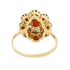 Ring in yellow gold 750 thousandths (18 carats). set with garnets. 1 oval-cut garnet. total weight approx. 0.80 ct. surrounded by 8 round-cut garnets. total weight approx. 1.20 cts (each garnet approx. 0.15 ct). width on top: 1.41 cm. Size size: 54. total weight: 3.89 g. eagle head hallmark. excellent condition.