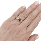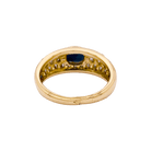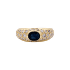 Ring vintage yellow gold 18 carats set with a central oval faceted sapphire in a surround of diamonds brilliant-cut.