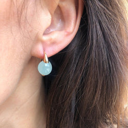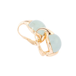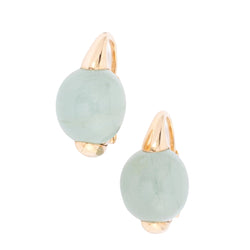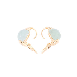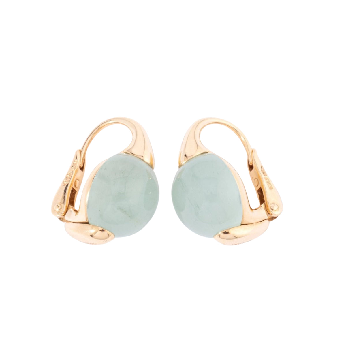 Pair of earrings from Pomellato, Luna model, in pink gold composed in its center of a large oval cabochon in milky aquamarine. For pierced ears not modifiable Material: 18k rose gold Hallmark: Master's mark, 750 Weight: 11.7 grams Length:: 1.9cm Width: 1.1 cm Period: 2010