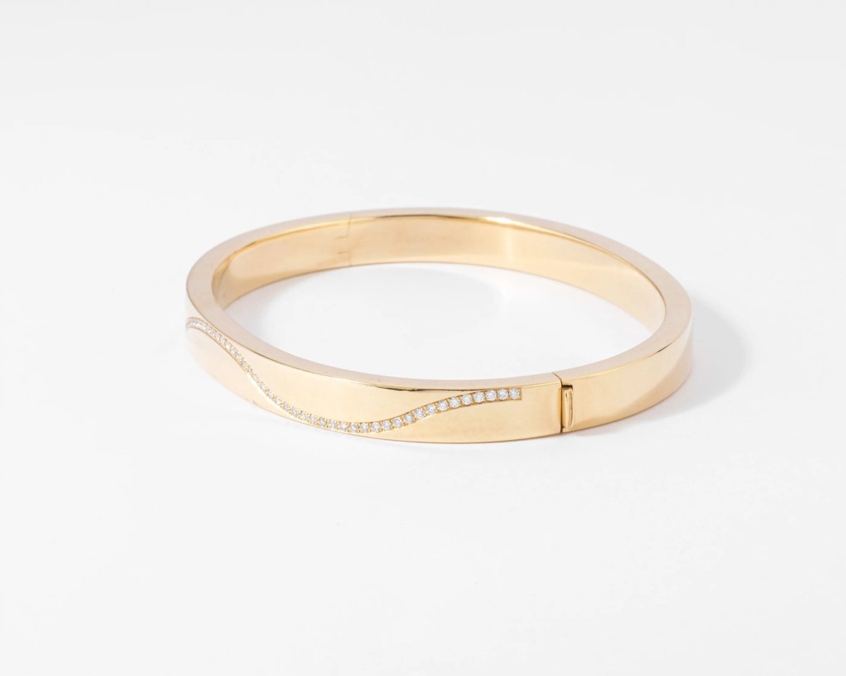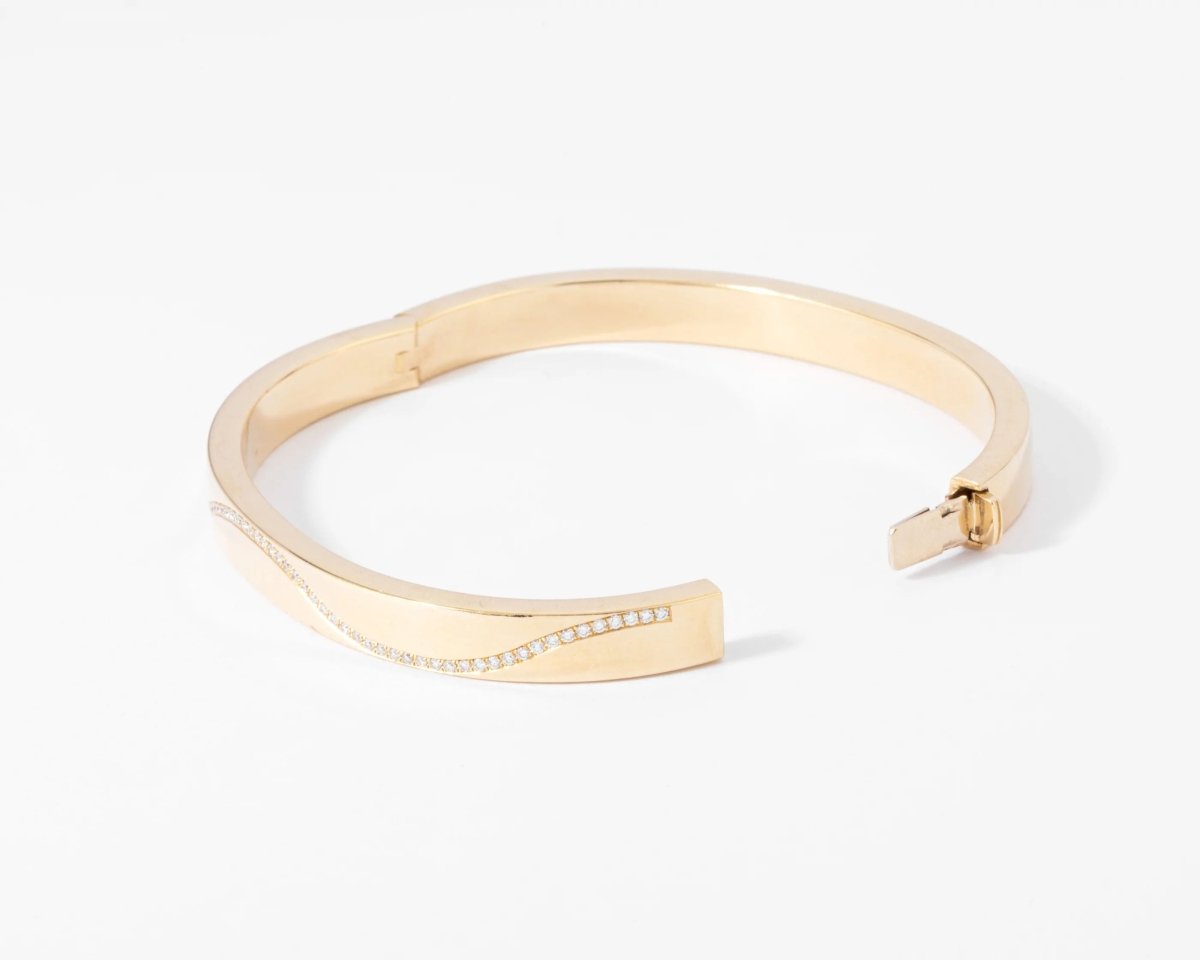 Yellow gold and diamond opening bangle