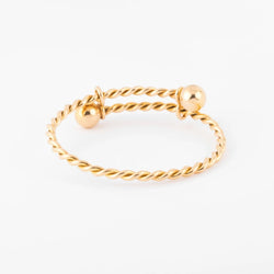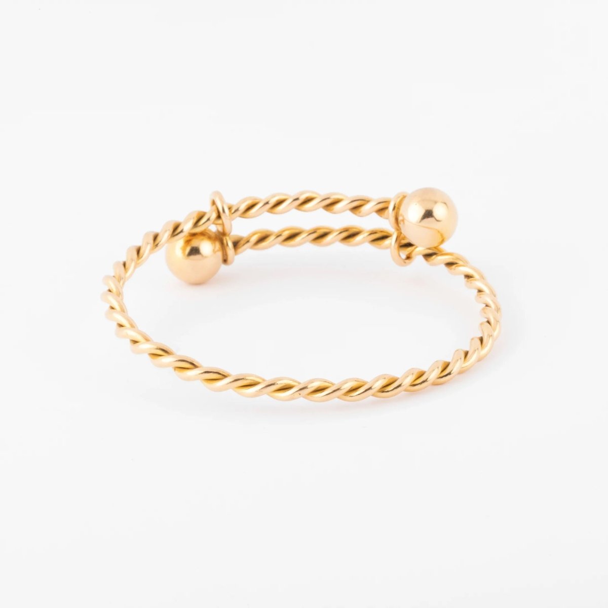 Sliding twisted yellow gold bangle, finished with two gold balls Material: 18k yellow gold Hallmark: Eagle head Weight: 42 grams Diameter: 7cm Period: 1900
