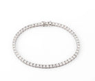 Flexible river bracelet in supple white gold adorned with a succession of diamonds in claw settings. Material: 18ct white gold Hallmark: Eagle head Weight: 13.2 grams Length: 20cm Width: 0.4cm Carat number: 4 Number of stones: 57 Stones Period: 2000