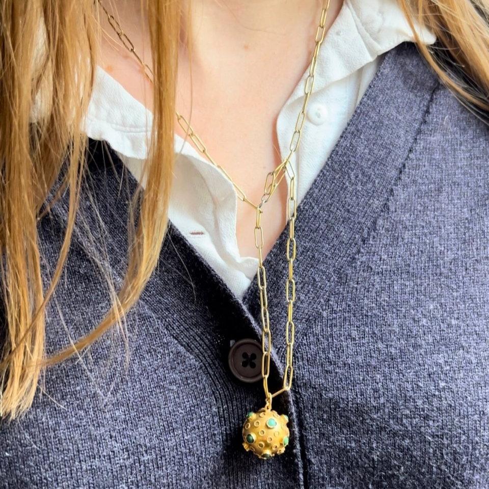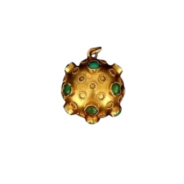 Sphere pendant in yellow gold 18 carats forming a sphere adorned with small chrysoprase cabochons.