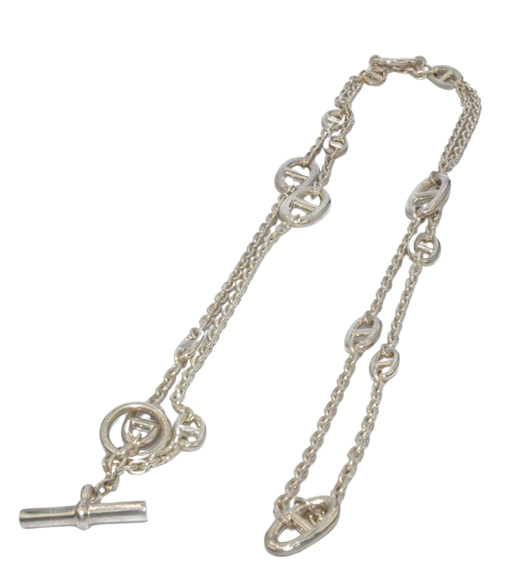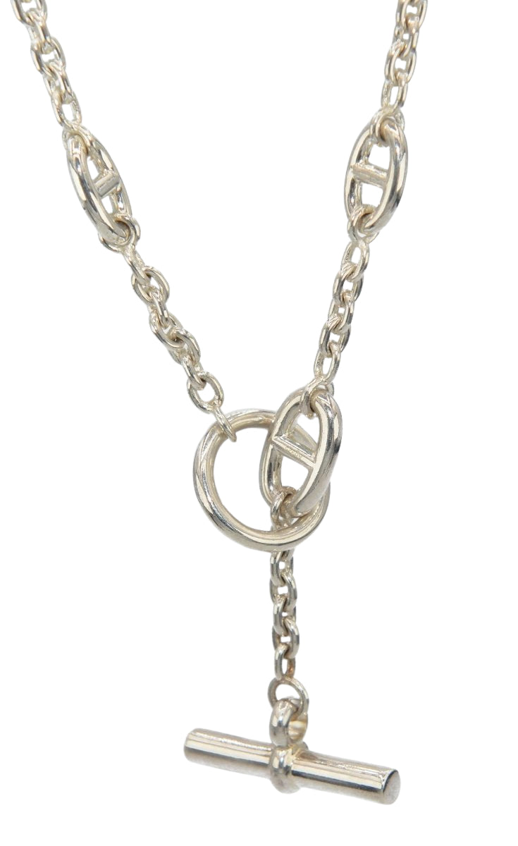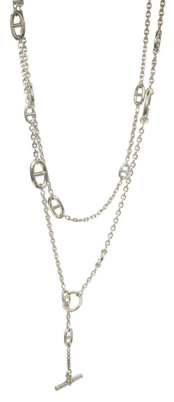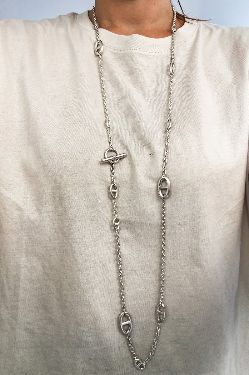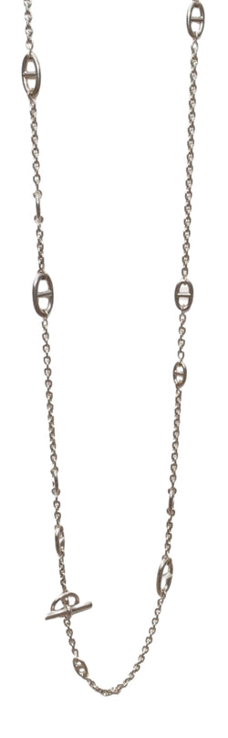 Hermès silver long necklace, Farandole model, composed of a succession of elegant openwork oval silver links. Material: Silver Hallmark: Signature Weight: 99.6 grams Length: 120cm Period: 2010