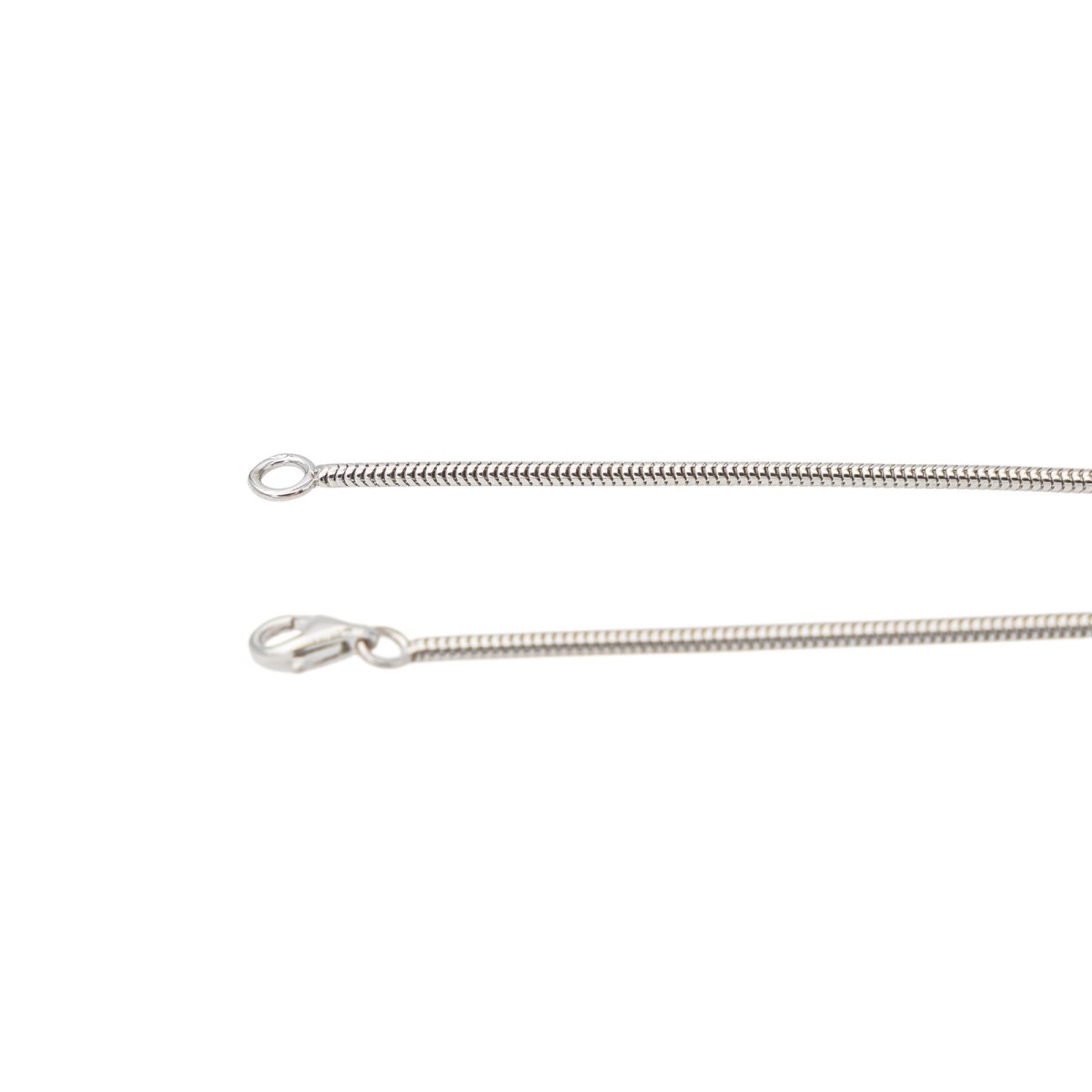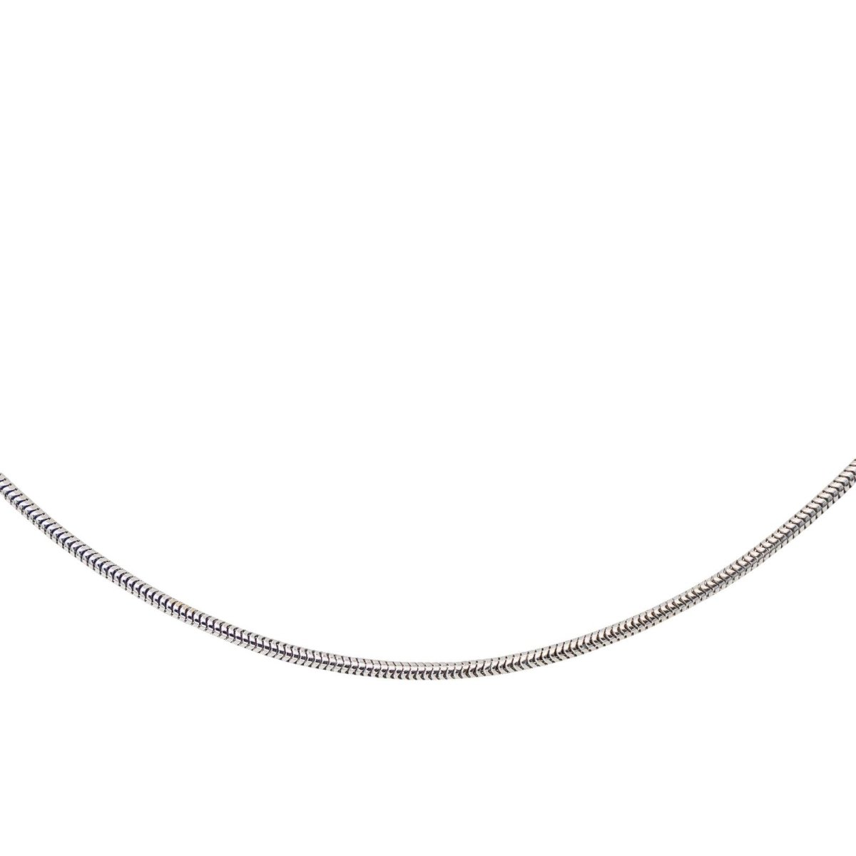 750 thousandths (18 carat) white gold chain. Serpentine mesh. Length: 45 cm. Thickness: 0.15 cm. Total weight: 6.45 g. Owl hallmark. Excellent condition