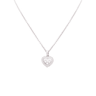 CHOPARD “Happy Diamonds Icons” pendant necklace in 18K white gold, set with a diamond-set heart containing three mobile diamonds between two sapphire crystals.