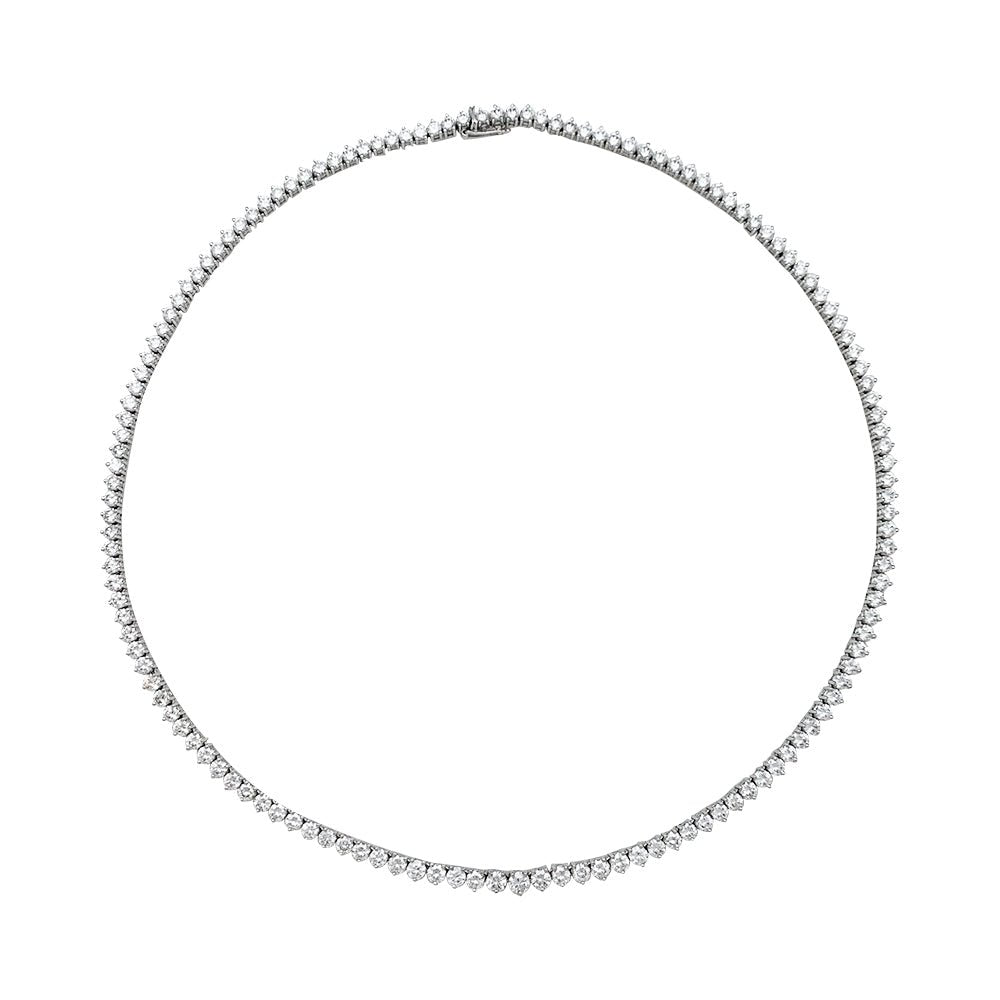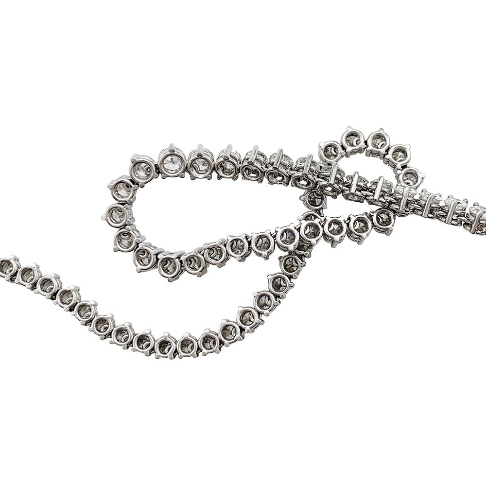 A Gubelin river necklace in 750/000 white gold set with falling brilliant-cut diamonds. Each diamond is set with 3 claws, the necklace is very flexible. Safety eight. Estimated quality: G, VS. Length: 400mm Weight: 20.8 grams Diamond weight: approximately 9 carat
