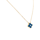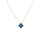 Necklace signed by Maison Van Cleef & Arpels, “Alhambra” collection, in 18-carat yellow gold, featuring a forçat link chain and a pendant holding a four-lobed Sèvres blue porcelain motif set with a brilliant-cut diamond.