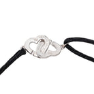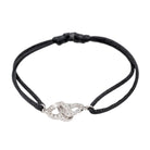 Bracelet signed lanyard from the House of Dinh Van in white gold 750 thousandths (18 carats) tested. double heart model R9. set with a pavement of diamonds. with a total weight of approx. 0.15 ct (each diamond each weighing approx. 0.005 ct). width: 0.9 cm. size adjustable thanks to sliding knots on the cord. total weight: 1.68 g. excellent condition