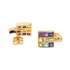 Earrings signed by the House of Guy Laroche in yellow gold 750 thousandths (18 carats), set with 4 cordierites, 2 amethysts, 2 garnets, 2 citrines, 2 peridots and 2 topazes. Each gem is square-cut and calibrated to approx. 0.02 ct each. Total gem weight: 0.28 ct. In excellent condition, these earrings will bring a touch of color and elegance to your outfit.