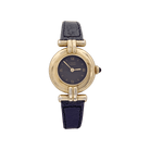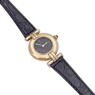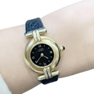 Watch signed CARTIER, "Colisée Must" model, in silver gold-plated. Black dial with Roman numerals at 12, 3, 6 and 9 o'clock. Bracelet in leather with metal buckle.