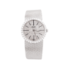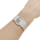 Watch vintage signed by Maison PIAGET in white gold 18 carats on Milanese mesh bracelet white gold 18 carats. Dial silverguilloché, baton hour-markers, bezel set with diamonds brilliant-cut bezel.