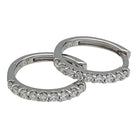 A pair of small hoop earrings in 750/000 white gold, each set with nine brilliant-cut diamonds. Estimated diamond quality: G/VS Length: 12mm Width: 1mm Weight: 1.60 grams Diamond weight: 0.20 carat