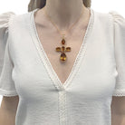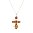 A 750/000 rose gold pendant featuring a cross set with faceted citrines. Chain sold separately.