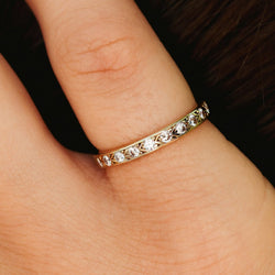 Demi-alliance en or jaune et diamants 18 carats – 750 millièmes Taille de doigt 52 mm Largeur de bague 2,5 mm Poids brut 2,4 gr