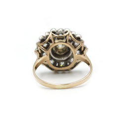 Bague fleur en or 750‰, sertie d'un diamant taille ancienne de 0,15 carat environ entouré de diamlants taille ancienne. Tour de doigt : 54 Mise à taille possible. Poids : 4,60 grs