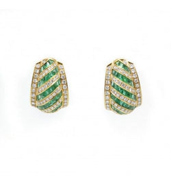 Boucles d'oreilles - Or. diamants et émeraudes