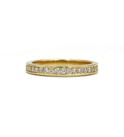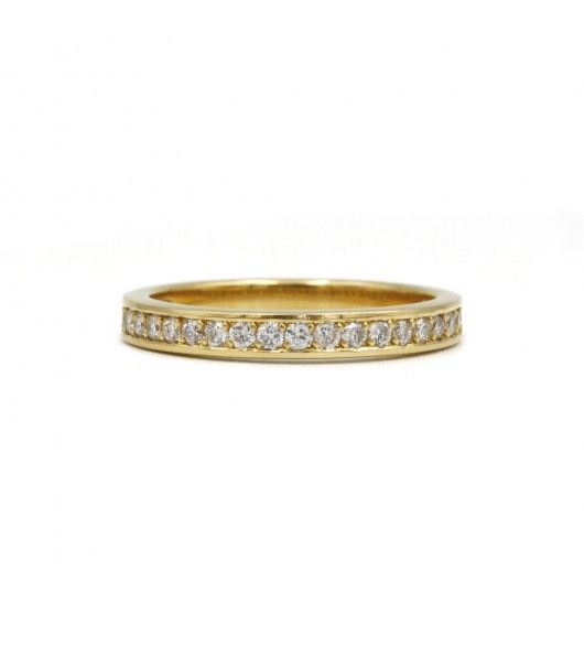 Demi alliance en or jaune 750. sertie de 25 diamants (0.50 carat environ) de qualité G VS. Tour de doigt : 57 Mise à taille possible.