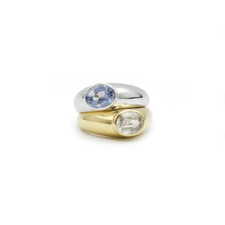 Double Bague en or jaune et or blanc 750‰, sertie d'un saphir blanc et d'un saphir bleu de 1,50 carats chacun environ. Tour de doigt : 51 Mise à taille possible. Poids : 12,75 grs
