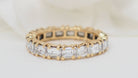 Bague ; Type : alliance tour complet ; Or jaune 18 kt / 750 millièmes ; 4,10g ; Sertie de 17 diamants taille baguette pour un poids total d'environ 2,55cts, qualité H SI ; Tour de doigt : 52 ; Largeur : 3,65 mm.