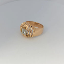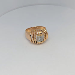 Bague en or rose et diamant 18 carats - 750 millièmes et platine Diamant d'environ 2 mm Tour de doigt 52 mm Largeur du haut de bague: 12,5 mm Poids brut: 5,44 gr