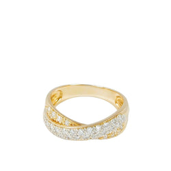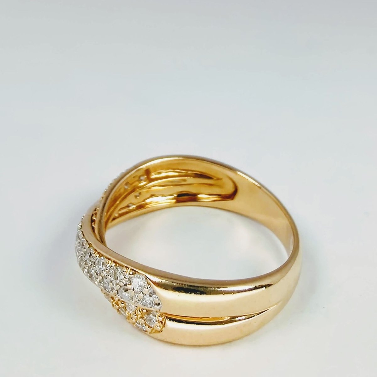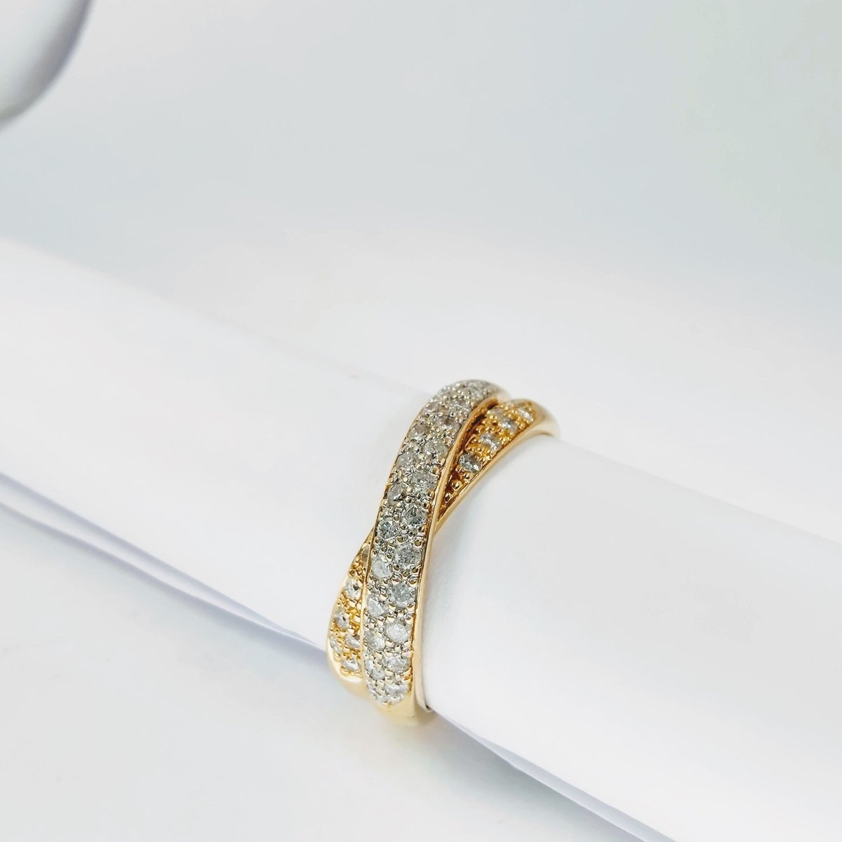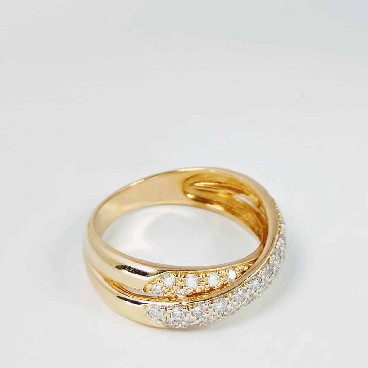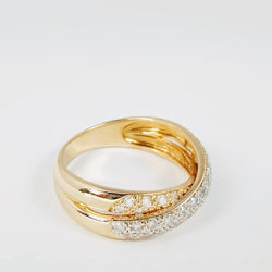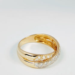 Bague en or jaune et or blanc 18 carats - 750 millièmes et pavage diamants Poinçonnée Taille de doigt 52 Largeur de la bague 6 mm Poids brut 3,5 gr Poli(e), Authenticité et qualité contrôlée, Remis(e) à neuf