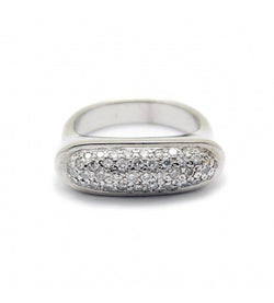 Bague en or blanc 18 carats pavée de 55 petits diamants (0.80 carat environ). Tour de doigt : 55