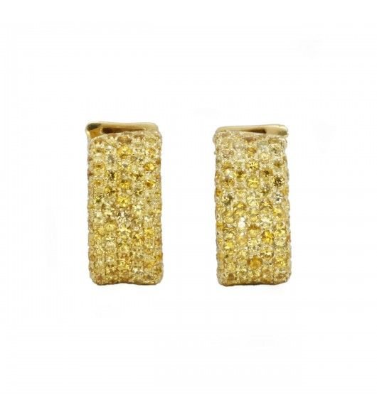 Imposante paire de boucles d'oreilles en or jaune 750. pavée d'environ 4 carats de saphirs jaune.